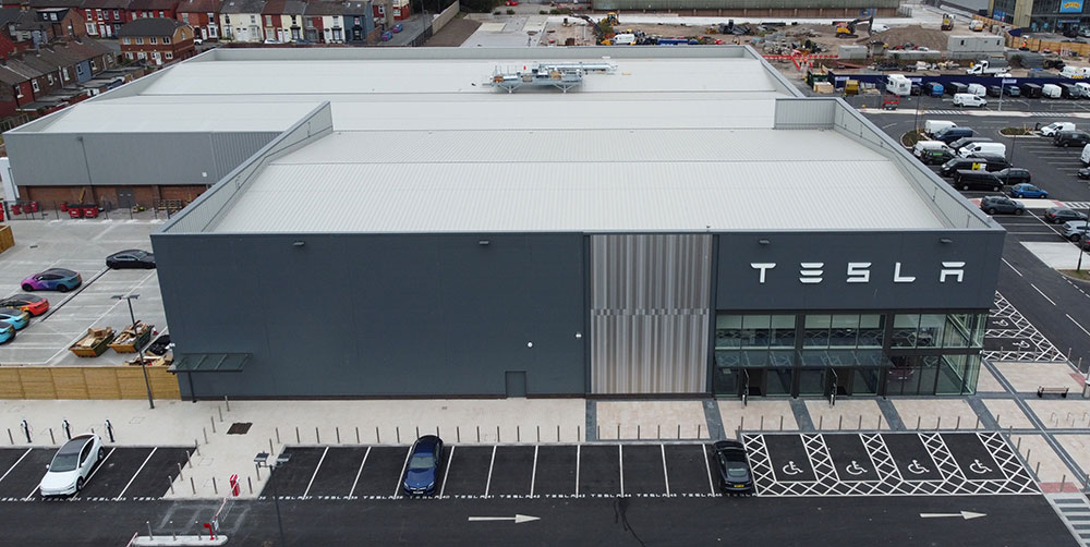 Tesla, involved installing a new Kingspan composite roof system with new insulated gutters.